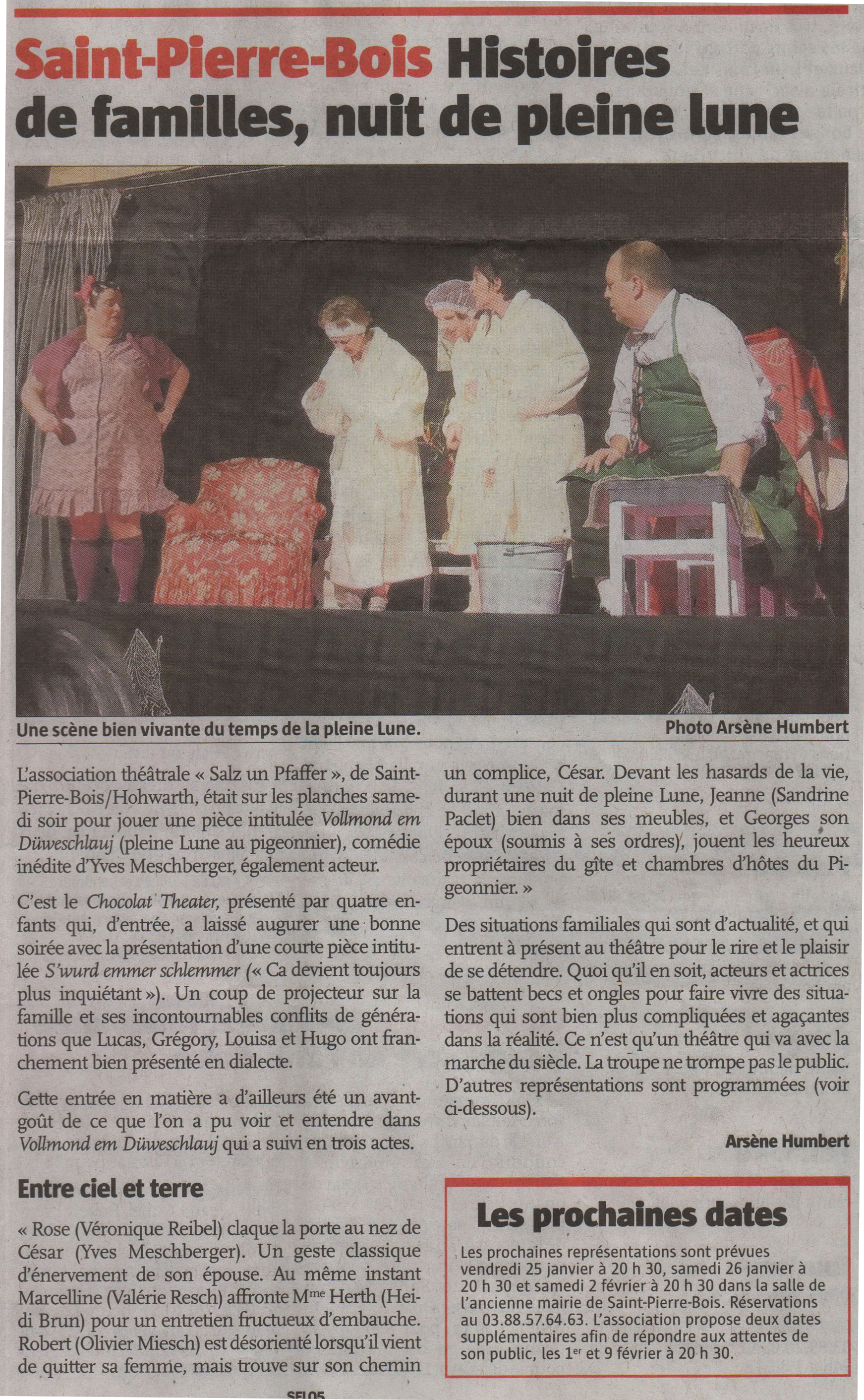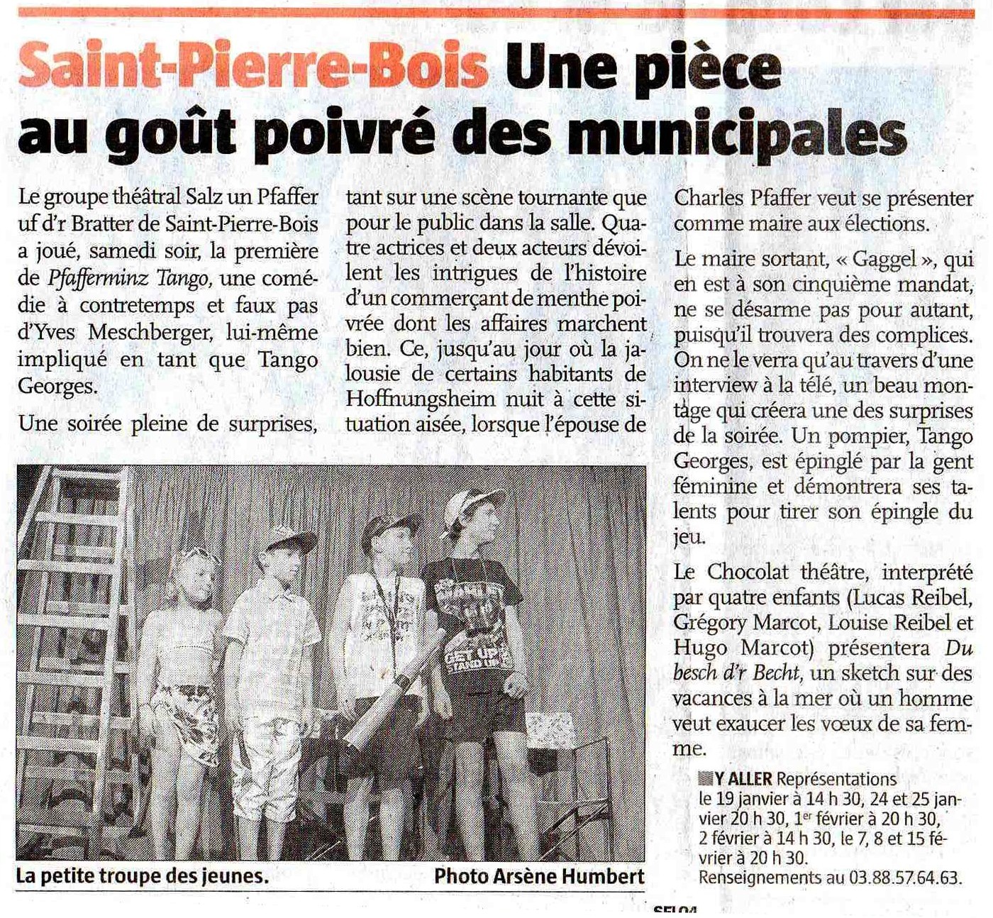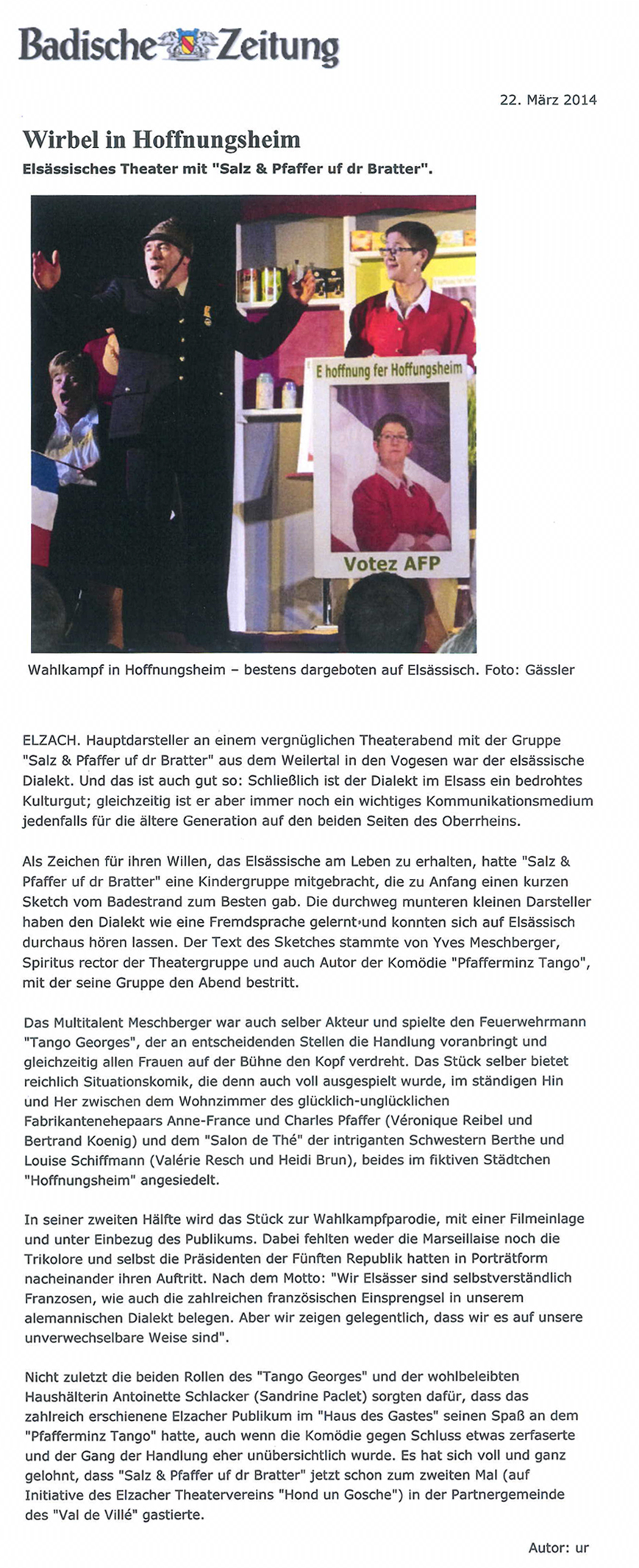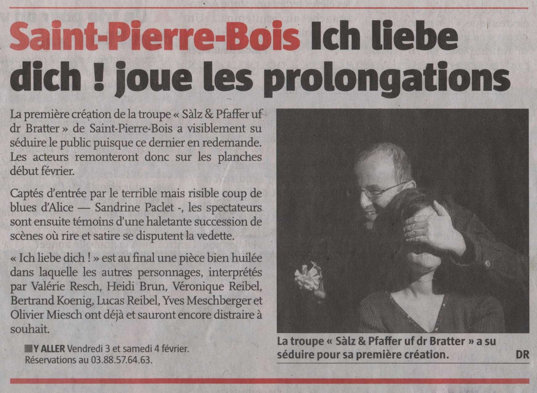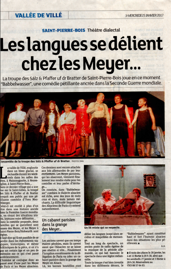 Comme tout artiste qui se respecte, la troupe Sàlz & Pfaffer uf dr Bratter est apparue à plusieurs reprises dans la presse (régionale, certes, mais tout de même) :