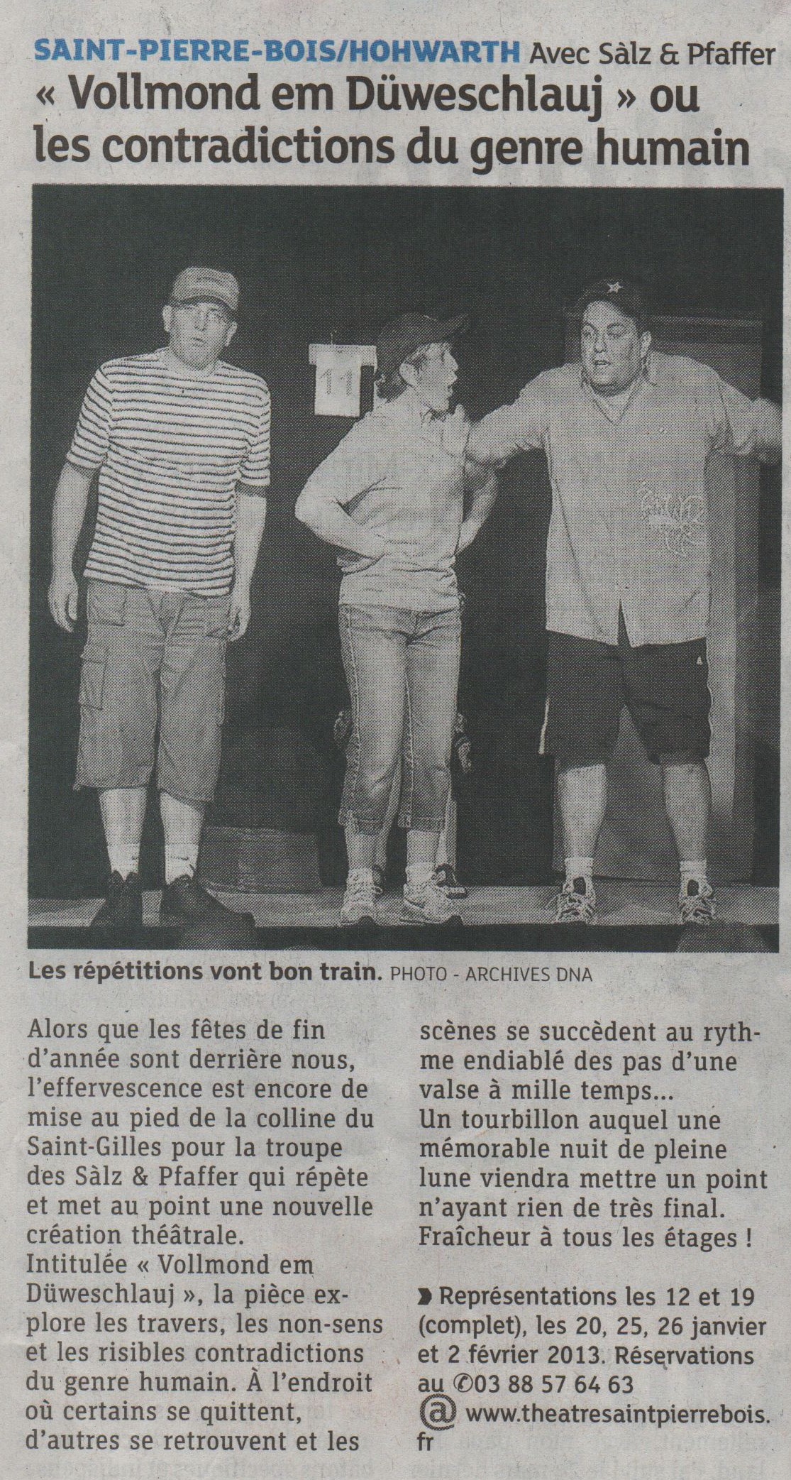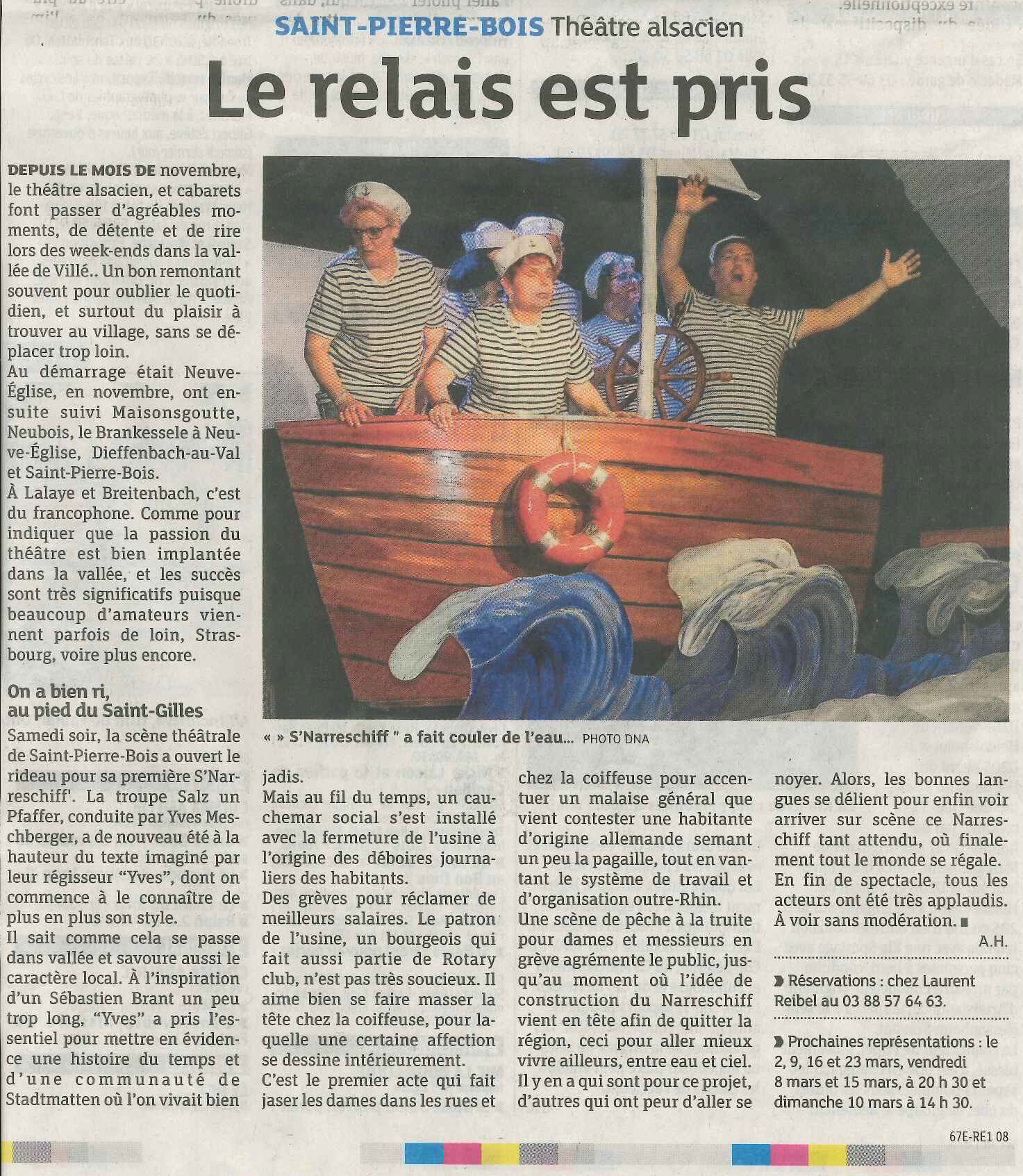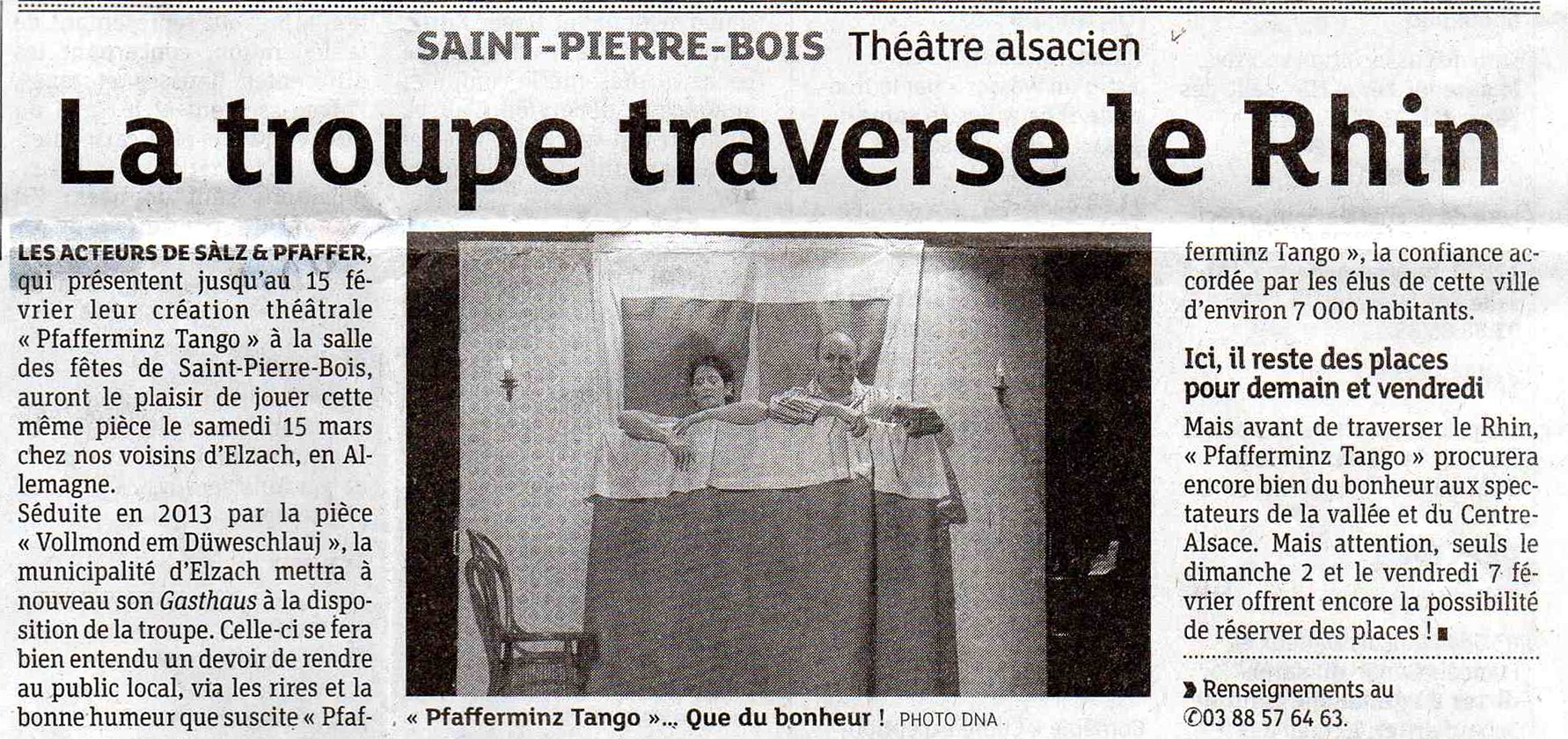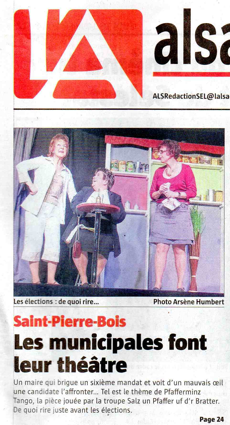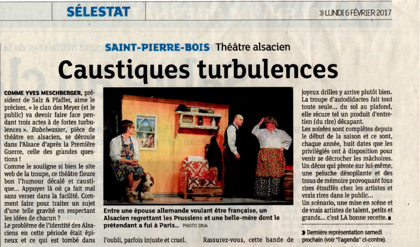 Comme tout artiste qui se respecte, la troupe Sàlz & Pfaffer uf dr Bratter est apparue à plusieurs reprises dans la presse (régionale, certes, mais tout de même) :