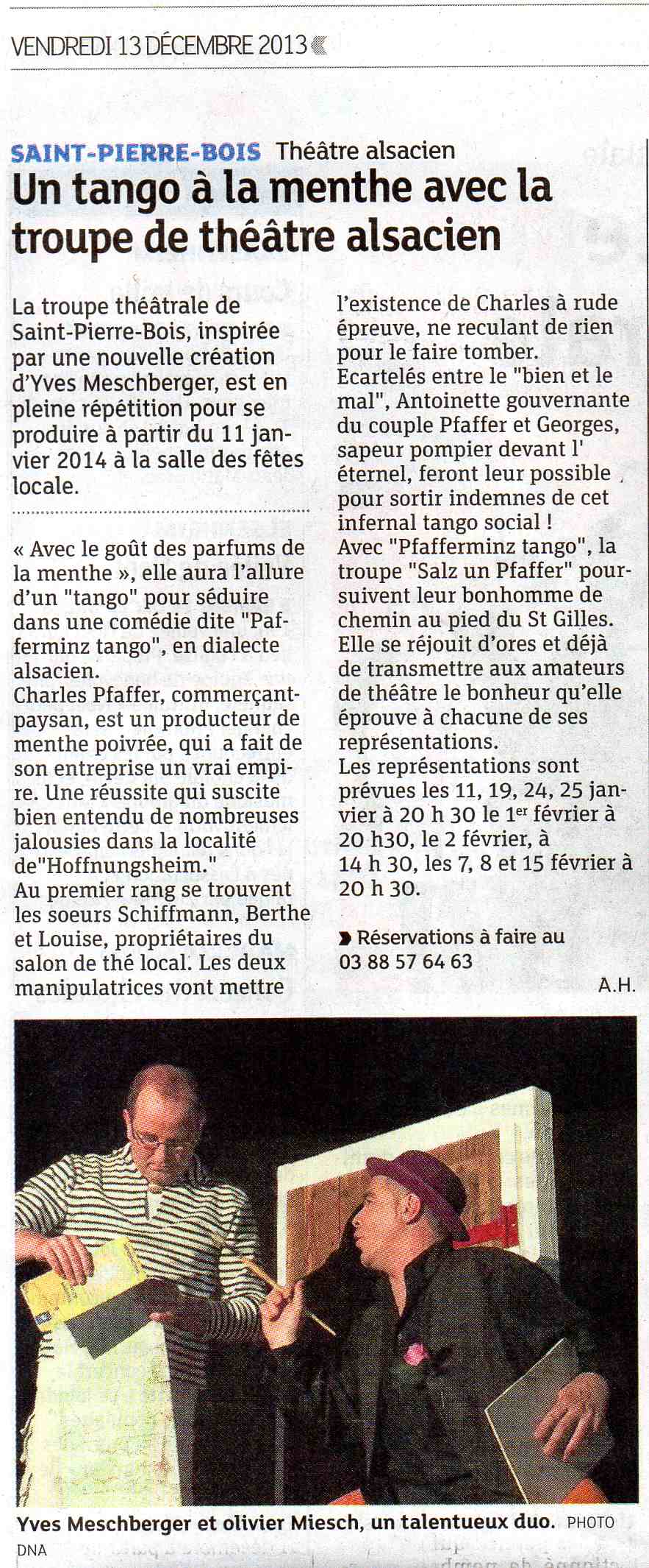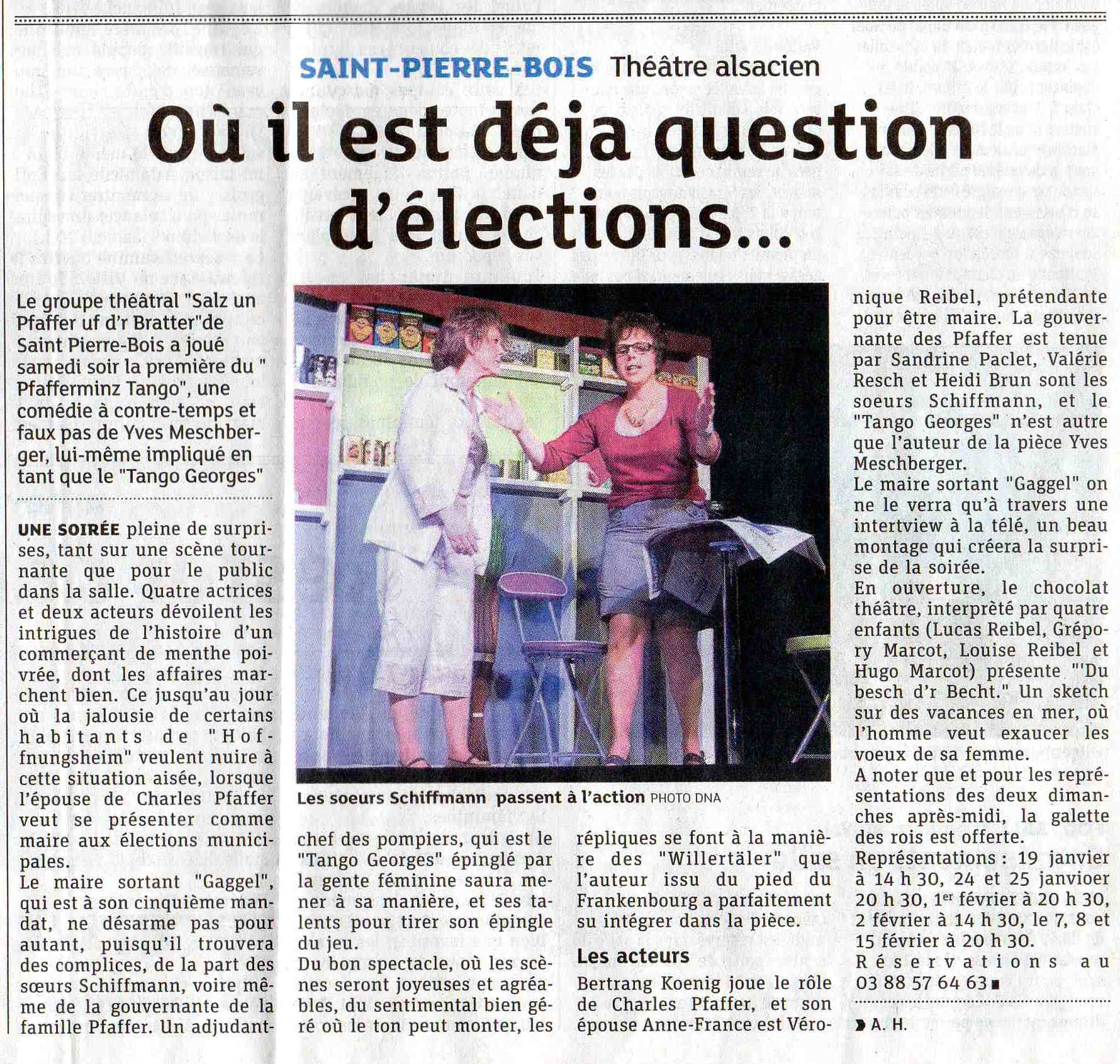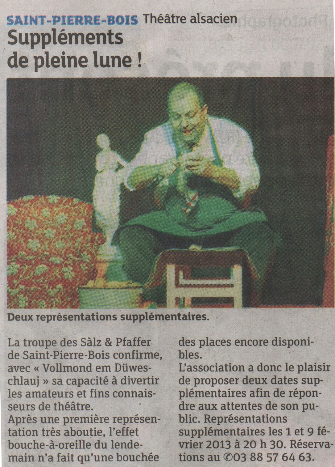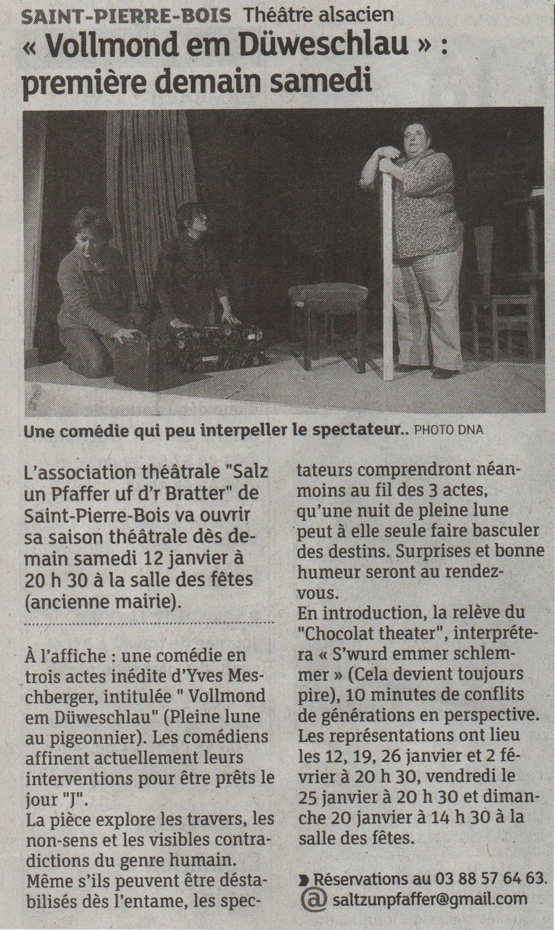 Comme tout artiste qui se respecte, la troupe Sàlz & Pfaffer uf dr Bratter est apparue à plusieurs reprises dans la presse (régionale, certes, mais tout de même) :